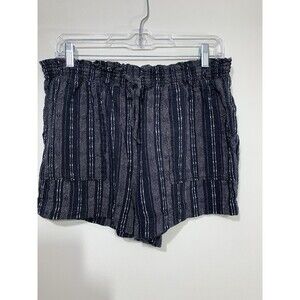 The Time and True Womens Black White Striped Pull-On Shorts in size L (12-14) are a stylish and comfortable option for women. Made from a blend of rayon and linen, these shorts feature a pull-on closure for convenience. The black and white striped pattern adds a classic touch, making them suitable for travel and casual occasions during the summer, fall, or spring seasons. The paperbag style adds a trendy accent to these versatile shorts from Time and True.