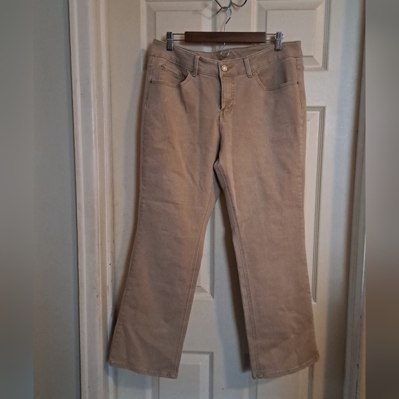 Time and true 18 petite bootcut tan jeans side to side is is 18" rise is 10.5 " inseam is 29" top of waist to bottom hem is 38" if you have any questions please message me bundle for bigger deals Bin A-44