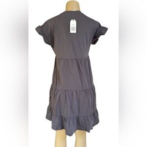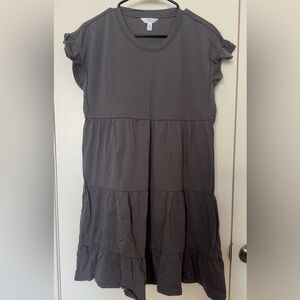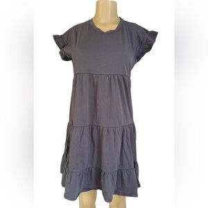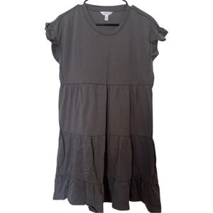 Time and true women’s short sleeve plain ruffle tunic midi gray flows size XS