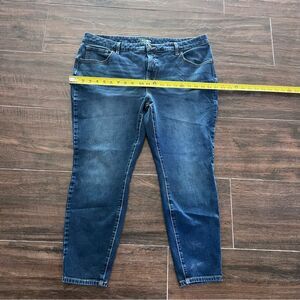 Stylish dark blue skinny jeans. Comfortable and versatile. Perfect for everyday wear. Size 20 Smoke free, has some stretch for comfort fit. These are “short” length.