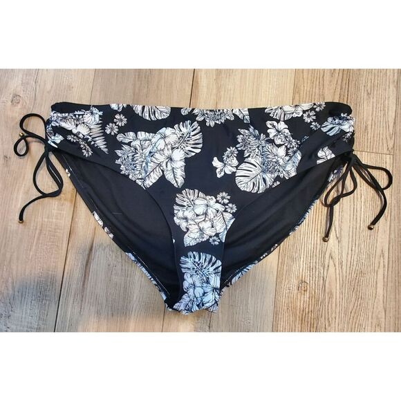 Black and white floral print swim bottoms. Have the matching top in Size L