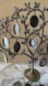 Really beautiful! Bought for my sisters 50th it went in a box because I never got around to putting it together! Three of the oval picture frames came off. I took them off to fit for pictures, later lost the small silver tone rings that connected them. I mean dang! Still have the frames though! This will need a little work. It is big 12x12 and it is beautiful! By Things Remembered. Silver tone with diamond like looking jewels. Clean home!