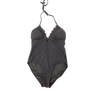 Time & Tru Scallop Black One Piece Swimsuit Solid Halter Size M 8-10 2726 padded