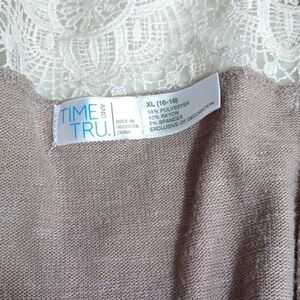Time&True Woman's Lace Shoulder Cream Short Sleeve Wrap Sweater XL 16-18
