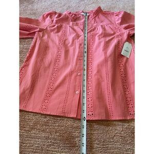 Time and Tru Coral Eyelet Long Sleeve Blouse Women’s Size M