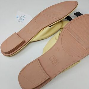 NWT. Golden yellow bow faux leather flip flop. size 10. Memory foam.