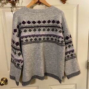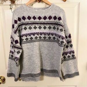 Cozy sweater with geometric patterns. Soft knit fabric. Perfect for cool weather.