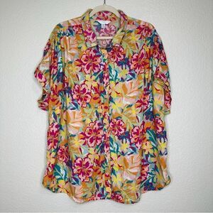 Time and Tru Linen Lyocell Blend Roll Cuff Button Down Shirt
