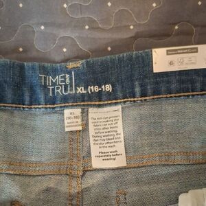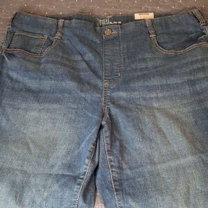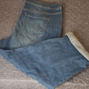 Stylish blue denim jeans with a classic design. Features a back pocket and rolled cuffs.