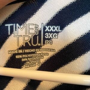 Like new plus size Time and Tru Women's Navy and White Stripe Tank Top. EUC, great shape, size XXXL, polyester blend, sleeveless, scoop neck. See pictures for details.