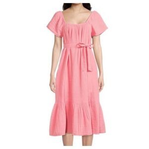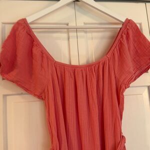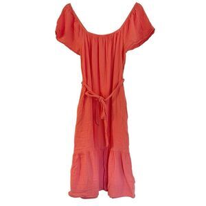 Time and Tru coral cotton gauze tie waist midi dress small