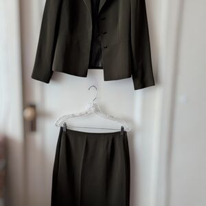 Elevate your professional wardrobe with this classic forest green blazer and skirt suit. Its timeless design ensures a polished look for any occasion.