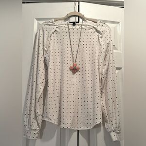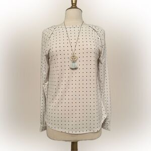 Classic! Banana Republic black & white polka-dot top! Size S. Necklace NOT included. Item has been well loved, but still has lots & lots of wear left Material shown in picture. Cute & versatile piece. A closet staple. Very comfy. Smoke/pet free home. Adorable. A MUST HAVE!!
