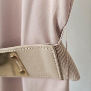 Includes: Wide Beige Elastic Belt, featuring Mirror-Gold Rivet Metallic Embellishment