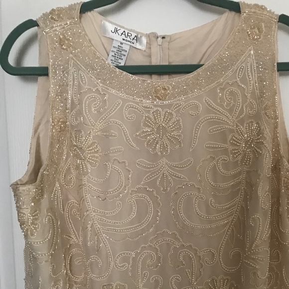 This beaded cream colored top has never been worn. Wear it with a tuxedo or plazzo pant or skirt. Or maybe some of your diamond jewelry. NEVER BEEN WORN..