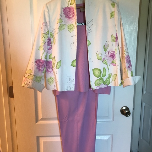 THREE piece pink pantsuit. JACKET, PANTS and KNIT TOP. Yes it is pink not lavender