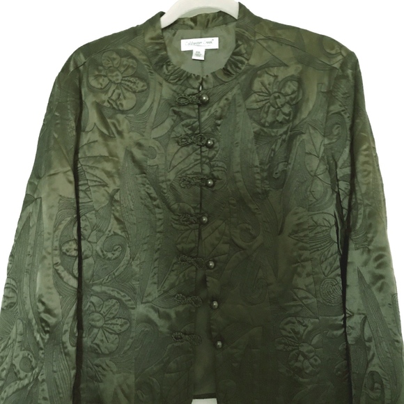 Green jacket with mandarin collar and button closure. NEVER BEEN WORN.