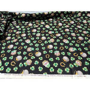 This festive fabric screams "luck o' the Irish" with its cheeky leprechauns, clovers, and pots of gold. Ideal for quirky crafts or holiday projects.