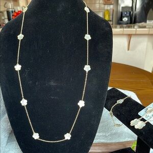 This exquisite necklace showcases a harmonious blend of white pearl-like beads and a gold chain, offering a classic and versatile accessory for any occasion. The station-style design ensures each bead is evenly spaced, creating a balanced and elegant look. Perfect for both casual and formal settings, this piece adds a touch of sophistication to any ensemble.