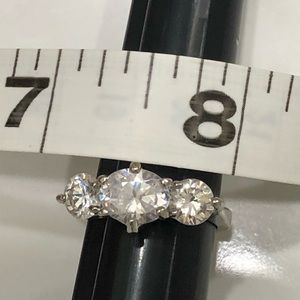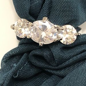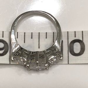 Clear stones. Either crystal or zirconia. Not sure about stone type or band type. Great condition. No damages or issues. No chips in stones. No flaking in band metal. Strong thick silver like band.