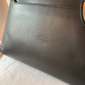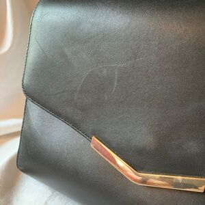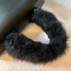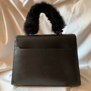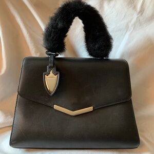 Time's Arrow black leather 'Ava Satchel' handbag with sheep fur handle