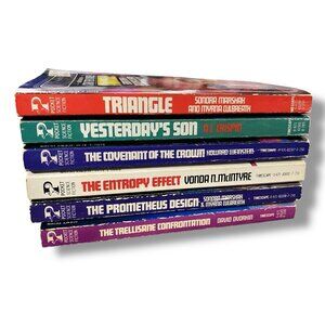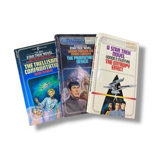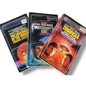 Dive into the universe of Star Trek with this captivating collection of six Timescape novels. Written between 1981-1984, these books offer thrilling tales of exploration, conflict, and camaraderie. A must-have for any Star Trek fan or vintage sci-fi collector, this set brings adventures from the final frontier to your bookshelf.