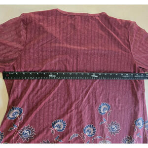 Timeson Blouse Women's 3XL Burgundy Floral Ruffle 3/4 Sleeve Round Neckline NWT