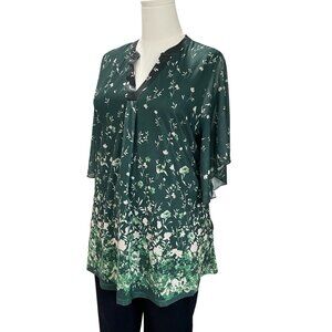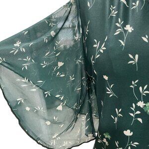 Timeson Womens Size Large Green Floral Chiffon Blouse Flutter Sleeve Boho Top