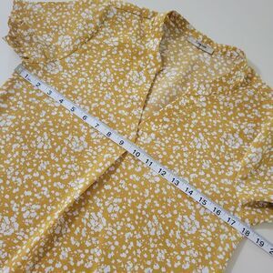Brighten your wardrobe with this charming Timeson yellow floral blouse. This top goes great with business attire such as a pencil skirt, wide-leg pants, and high heels. Pair it with jeans or leggings when you want to kick back and relax with friends. Perfect for the office or a casual outing. Excellent, new condition.