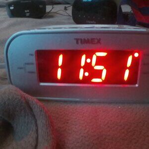 Wake up to your favorite tunes with the Timex AM/FM Dual Alarm Clock Radio. This contemporary clock radio features a 1.2" red LED display, illuminated dial, and dual alarms with snooze function. It also has a line-in jack to connect your music player, and an AM/FM radio with preset stations. The clock has a white plastic finish and runs on 120V electrical power with battery backup. It's perfect for any room and is made of durable plastic material. With a quartz movement, this clock radio is highly accurate and reliable. Whether you need to wake up early for work or just want to listen to music, this clock radio is a great choice.