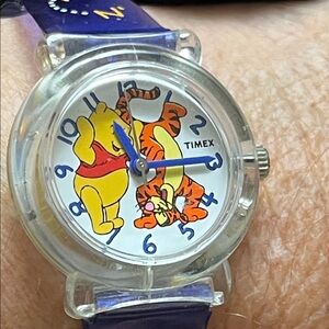 Gently preloved. New battery. Included is a vegan leather watch box. Ready for gifting. Perfect for a smaller wrist or a child’s first analog watch - learn to tell time w/ Pooh & Tigger!