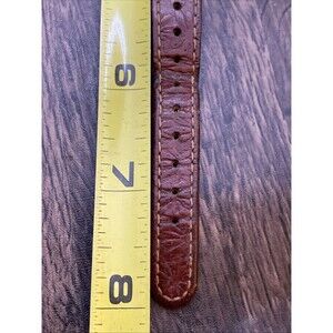 Elegant ladies watch with floral imprinted brown leather band. Indigo with the push of a crown allows