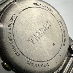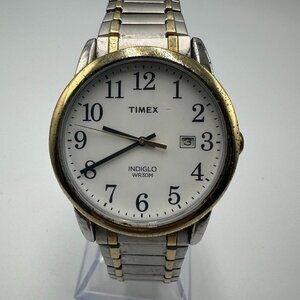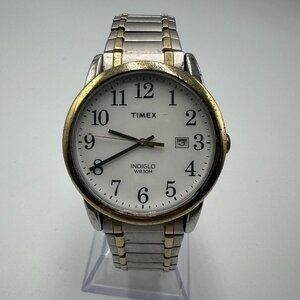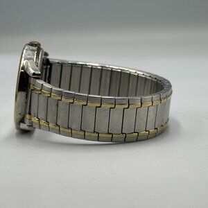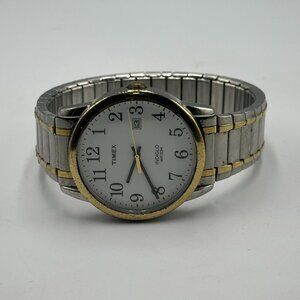 Timex Easy Reader Watch Men Silver Gold Two Tone Stretch Band New Battery 7.75"
