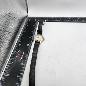 Condition: Good, with light wear on the band and bezel, and minor scuffs on the case and strap from regular use—no significant flaws. Genuine leather strap shows creasing and some discoloration, but is intact and wearable. Watch face and crystal in good condition. Please see photos for details.