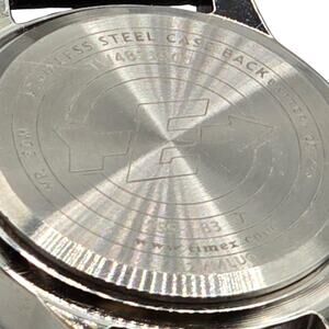 Features include an INDIGLO night-light (see illuminated dial in photos), an easy-to-read analog display, water resistance to 50 meters, and a stainless steel case back.