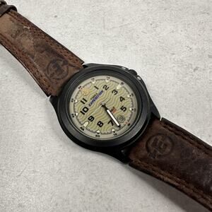 Timex Expedition Indiglo Watch Mens 41mm Brown Leather Band Date WR 50M