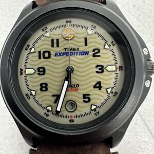 Timex Expedition Watch Mens 41mm Brown Leather Band Date Indiglo New Battery