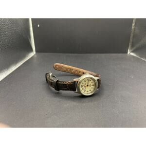 Timex Expedition Watch Women's Silver Tone 22 Indiglo WR50 Brown Leather Band