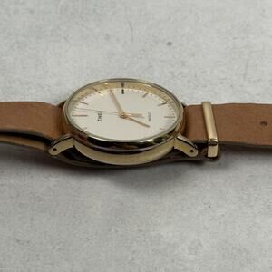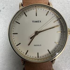 Timex Fairfield Watch 37mm Gold Tone Brown Leather Strap Indiglo New Battery