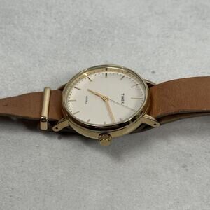 Timex Fairfield Watch 37mm Gold Tone Case Brown Leather Strap Indiglo TWP298400