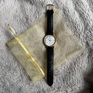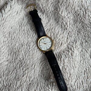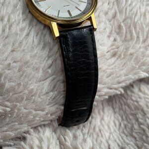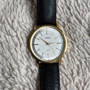 Timex Gold & Black Leather Watch – Classic & Minimalist