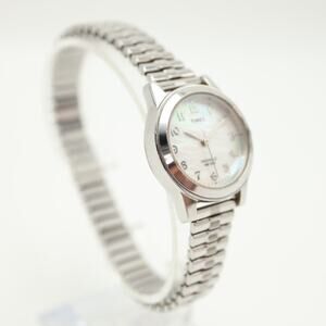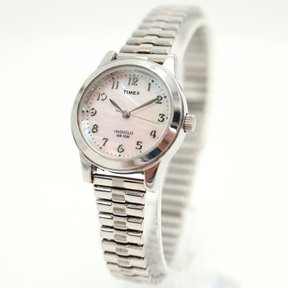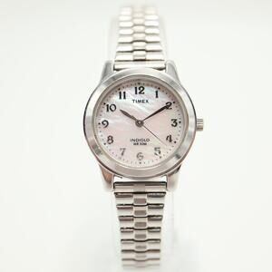 Timex Indiglo Silver Tone MOP 26mm Womens Watch Stretch Band w New Battery