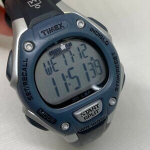 Timex Ironman Triathlon women digital watch 34mm quartz 30 lap blue silver case