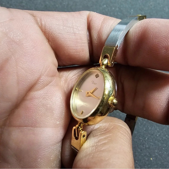 Timex Ladies Quartz Watch Silver Gold Tone Diamond Accent Not Working for parts