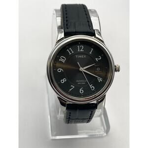 Timex Mens Indiglo Watch 35mm New Battery New Italian Leather Band WR 50M Date
