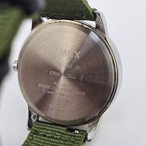 Timex Men's Watch 35MM White Dial Date New Army Green Canvas Bands New Battery
