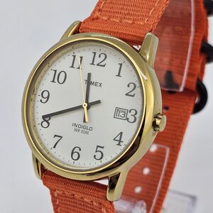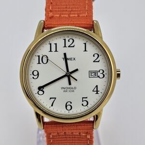 Timex Men's Watch 35MM White Dial Date New Orange Canvas Bands New Battery