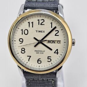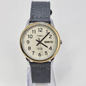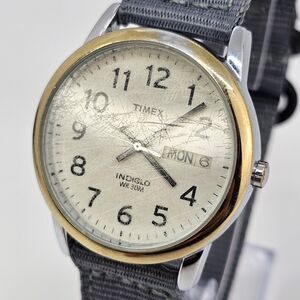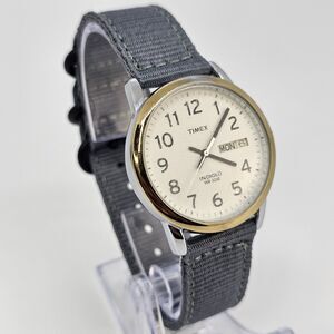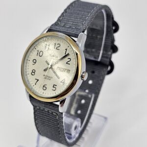 Timex Men's Watch 35MM White Dial Day Date New Gray Nylon Bands New Battery