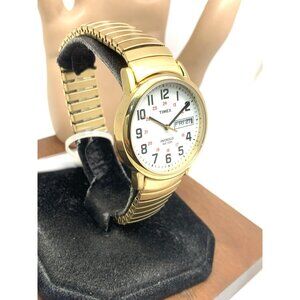Timex Men's Watch T2N092 Indiglo White Dial Quartz Gold Tone Expansion Band 35mm