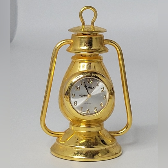 "Timex" 'Lantern' Mini Brass Clock with New Battery Installed (Works) - Excellent Condition